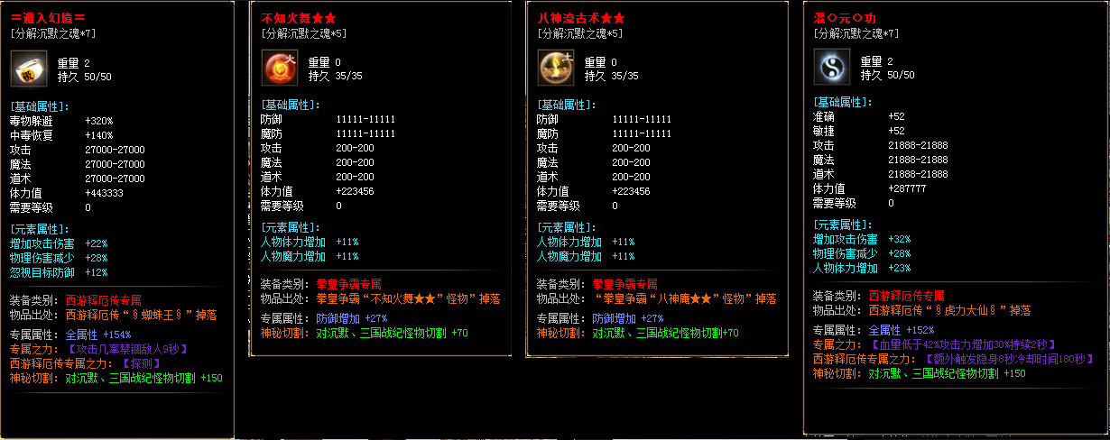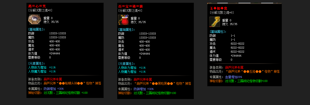 本服套装200套 散件专属6000多套 各种神装眼花缭乱 长期探索